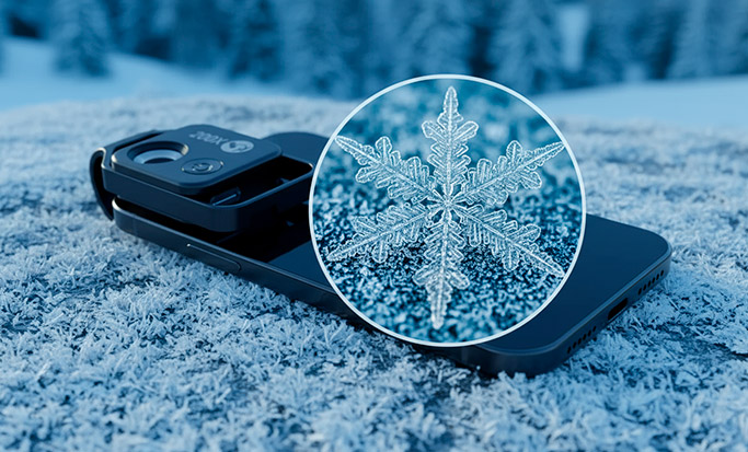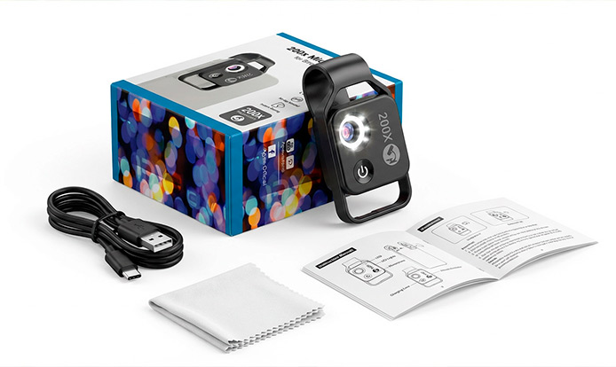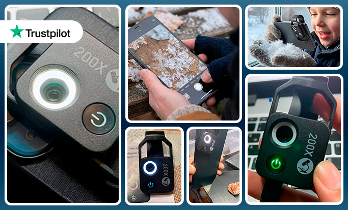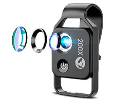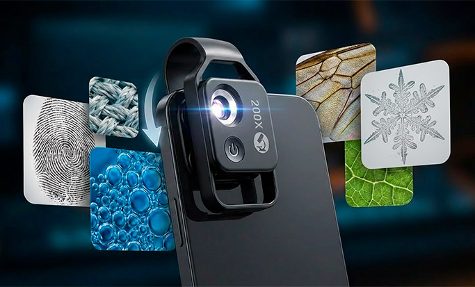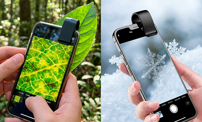 It clips onto your smartphone and turns it into a super zooming microscope with 200 magnification